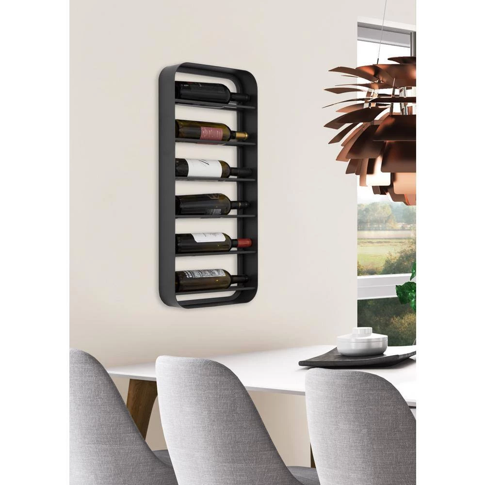 - Save space in your kitchen or dining room with the modern design of the armenta wine rack, inspired by minimalist design, the armenta features an uncomplicated radius rectangle shape, with six spaces for average-sized wine bottles, the 100% metal construction provides peace of mind for your vintage bottles, with metal keyhole hangers securely hanging your bottles on the wall