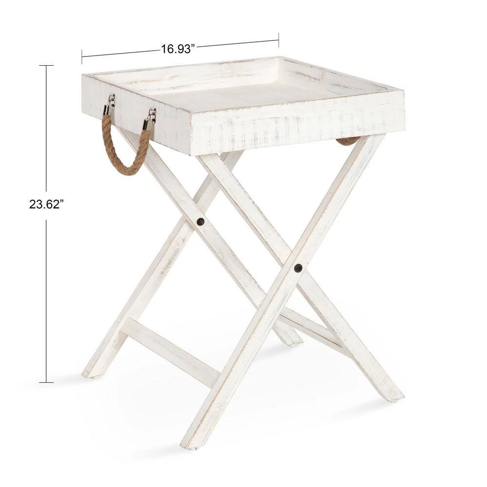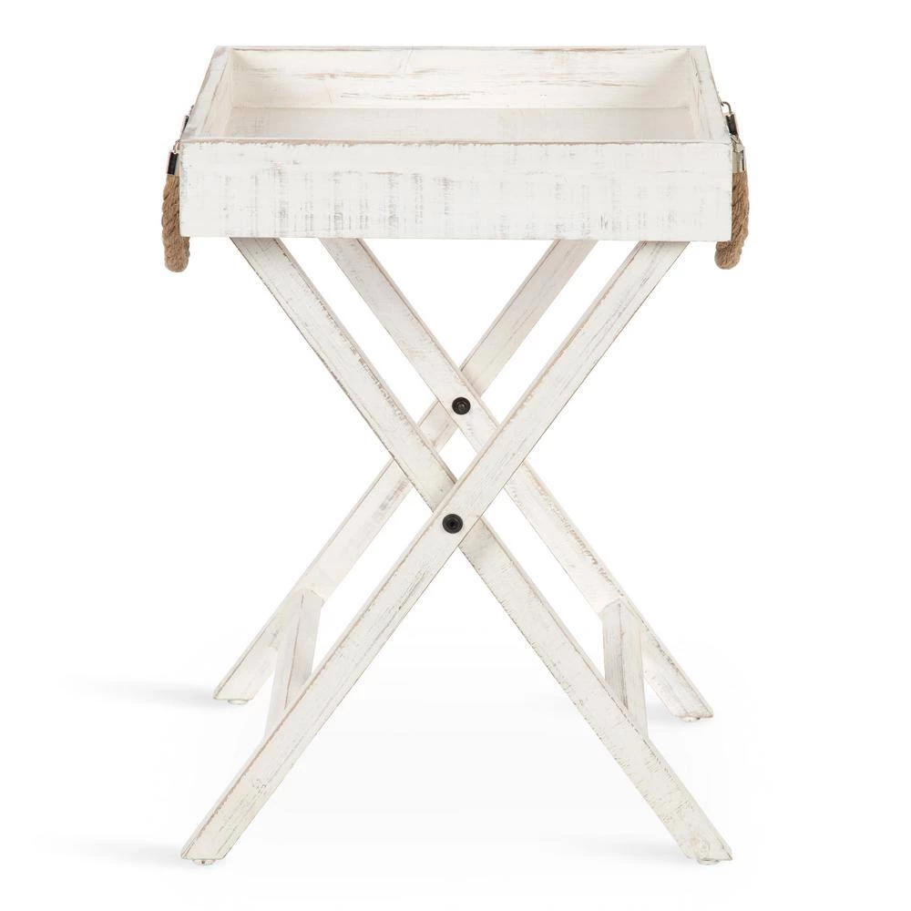 - COASTAL STYLE: The Bayville Tray Table takes inspiration from vintage design and beachy decor aesthetics with a distressed coastal white finish and bucolic rope handles