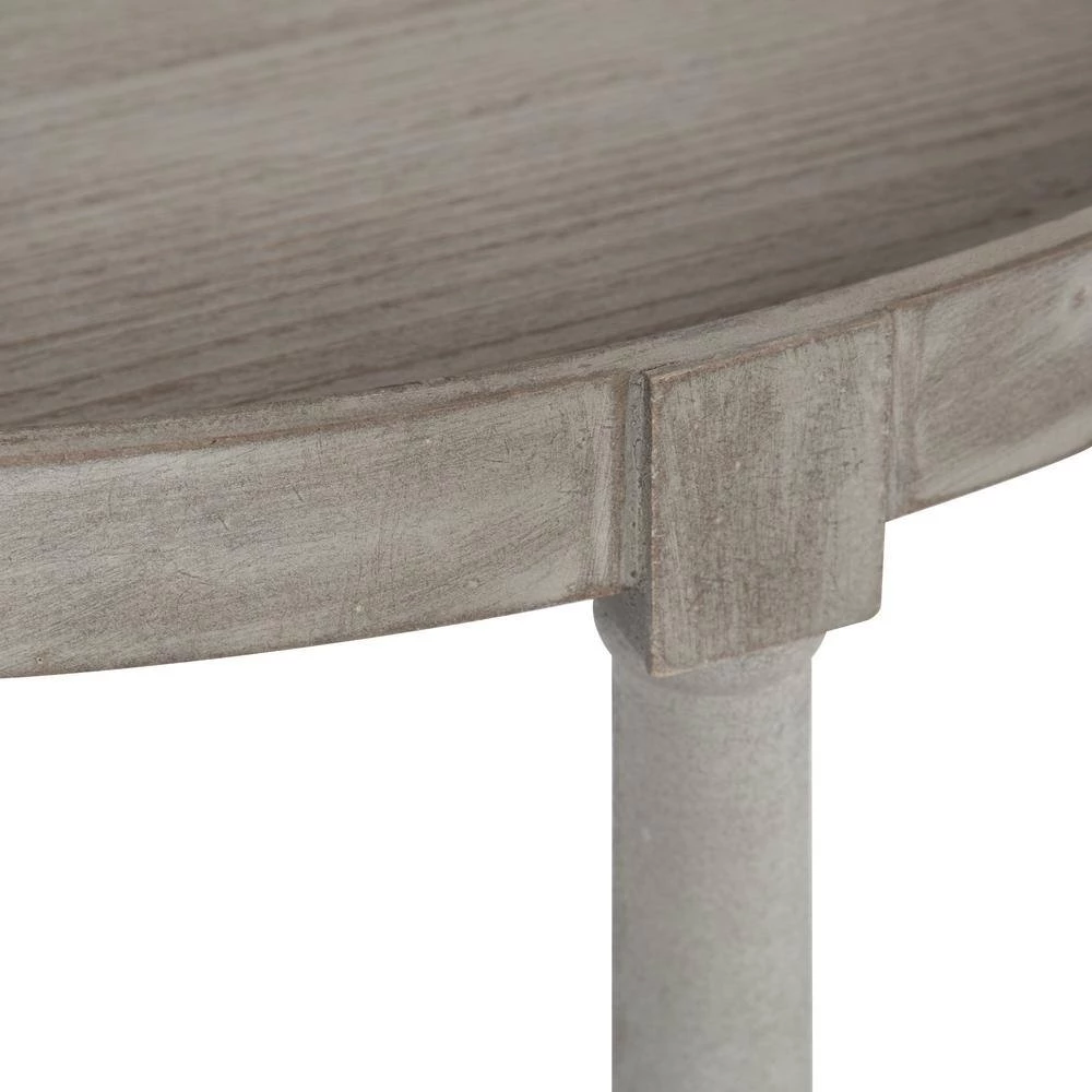 - Rustic look: the Bellport table features a colonial-inspired design with a half-moon shape, turned legs, and a vintage farmhouse finish
