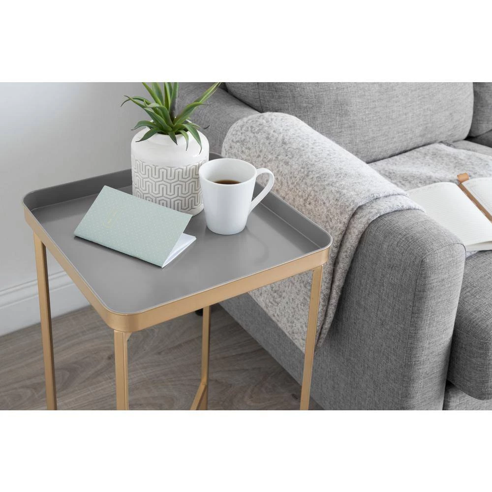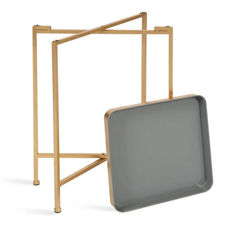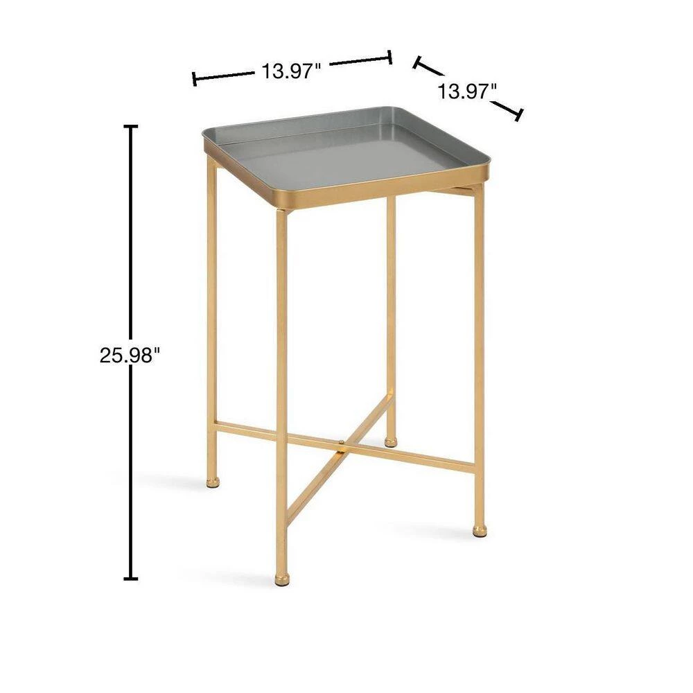 The Celia tea table’s beautiful and modern design makes for a fabulous addition to your home decor. Inspired by minimal yet functional aesthetics, the Celia tea table features clean lines and a chic, square tabletop, creating a conversation starter that will spark the energy at any get-together. It’s made from a 100% metal construction, making it resilient enough for multiple years of display. The square tabletop is magnetic, securing onto the cross legs in a snap. The simple cross-leg frame is also foldable, making it easy to store away when you need extra room at your next book club or social gathering. This beautiful Celia table’s overall dimensions are 14 in. wide x 14 in. deep x 26 in. tall, making it a fabulous compliment to your bed, couch, vanity, or entryway. Use it to showcase an alluring succulent, or use it for storage of books, keys, and other household necessities. The bottom of each of the legs has footpads attached to prevent scuffing, scratches, or other damage to your hard surfaces.