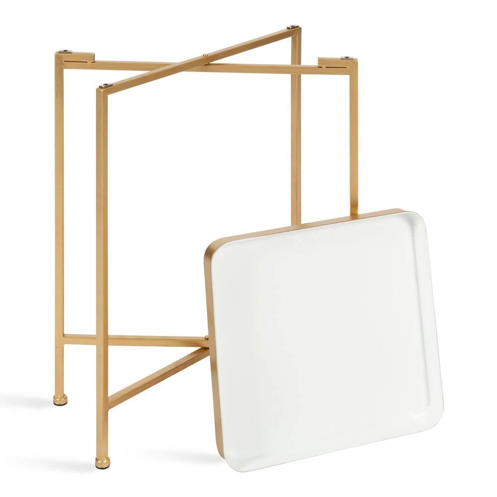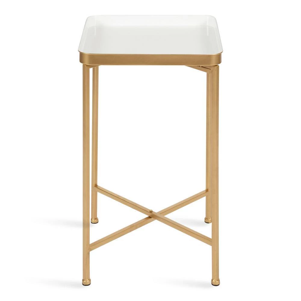 The Celia tea table’s beautiful and modern design makes for a fabulous addition to your home decor. Inspired by minimalist yet functional design, the Celia tea table features clean lines and a chic, square tabletop, creating a conversation starter that will spark the energy at any get-together. It’s made from a 100% metal construction, making it resilient enough for multiple years of display. The square tabletop is magnetic, securing onto the cross legs in a snap. The clean cross-leg frame is also foldable, making it easy to store away when you need extra room at your next gathering. This beautiful Celia table’s overall dimensions are 14 in. wide x 14 in. deep x 26 in. tall, making it a fabulous compliment to your bed, couch, vanity, or entryway. Use it to showcase a gorgeous succulent, or use it for storage of books, keys, and other household necessities. The bottom of each of the legs has footpads attached to prevent scuffing, scratches, or other damage to your hard surfaces.