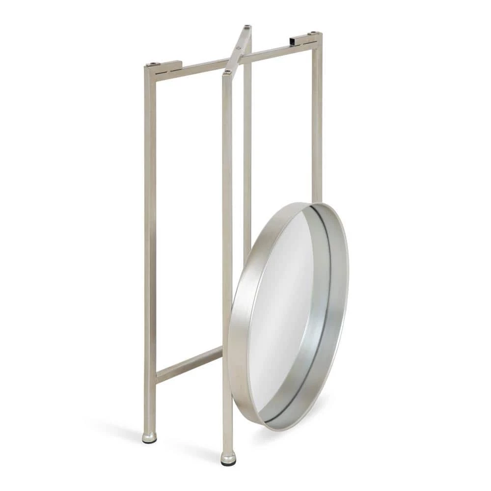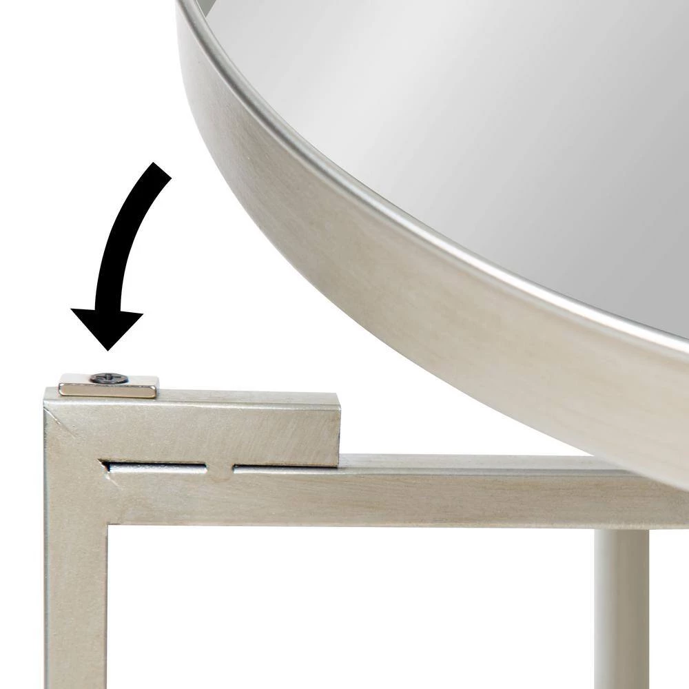 - Small space size: removable round mirror tray tabletop has a 14 in. Dia and 1.5 in. depth; side table stands 25.75 in. high