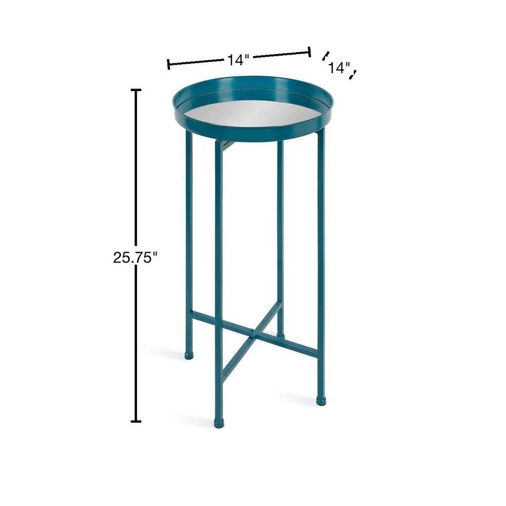 Next time you throw a party, do not worry about taking out those old wooden tray tables your parents passed down to you from their stuffy storage area. You now own these hip modern and functional metal tray tables. The Celia collection brings a pop of glamour to your home decor. This metal pop up end table is designed to be the perfect height to fit in a tight space next to a bed or alongside a sofa. It also makes an adorable plant stand. With beautifully elegant straight legs, a round tray tabletop surface, and the option to fold away for storage, this small pedestal table will be the perfect accent piece in your home. The tray top secures to the legs with magnets to allow for sturdy display and easy remove-ability.