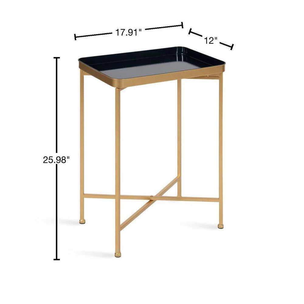 Embrace a beautiful and modern theme when you redecorate with the Celia side table. Inspired by functional yet minimalist aesthetics, the Celia side table features clean lines and a rectangular tabletop, creating a sophisticated accent that will spark the conversation at any get-together. It’s made from a 100% metal construction, making it resilient enough for multiple years of display. The rectangular tabletop sticks to the frame magnetically, securing onto the cross legs in a snap. The clean cross-leg frame is also foldable, making it easy to stow away when you need extra room at your next gathering. This beautiful Celia table’s overall dimensions are 18 in. wide x 12 in. deep x 26 in. tall , making it a fabulous compliment to your bed, couch, vanity, or entryway. Use it to showcase a gorgeous succulent or store books, keys, and other household necessities. The bottom of each of the legs has footpads attached to prevent scuffing, scratches, or other damage to your hard surfaces.