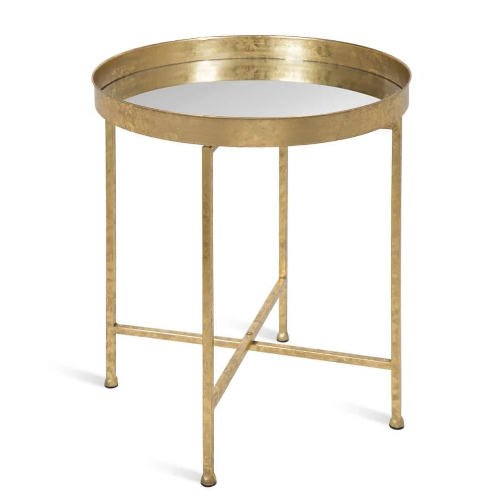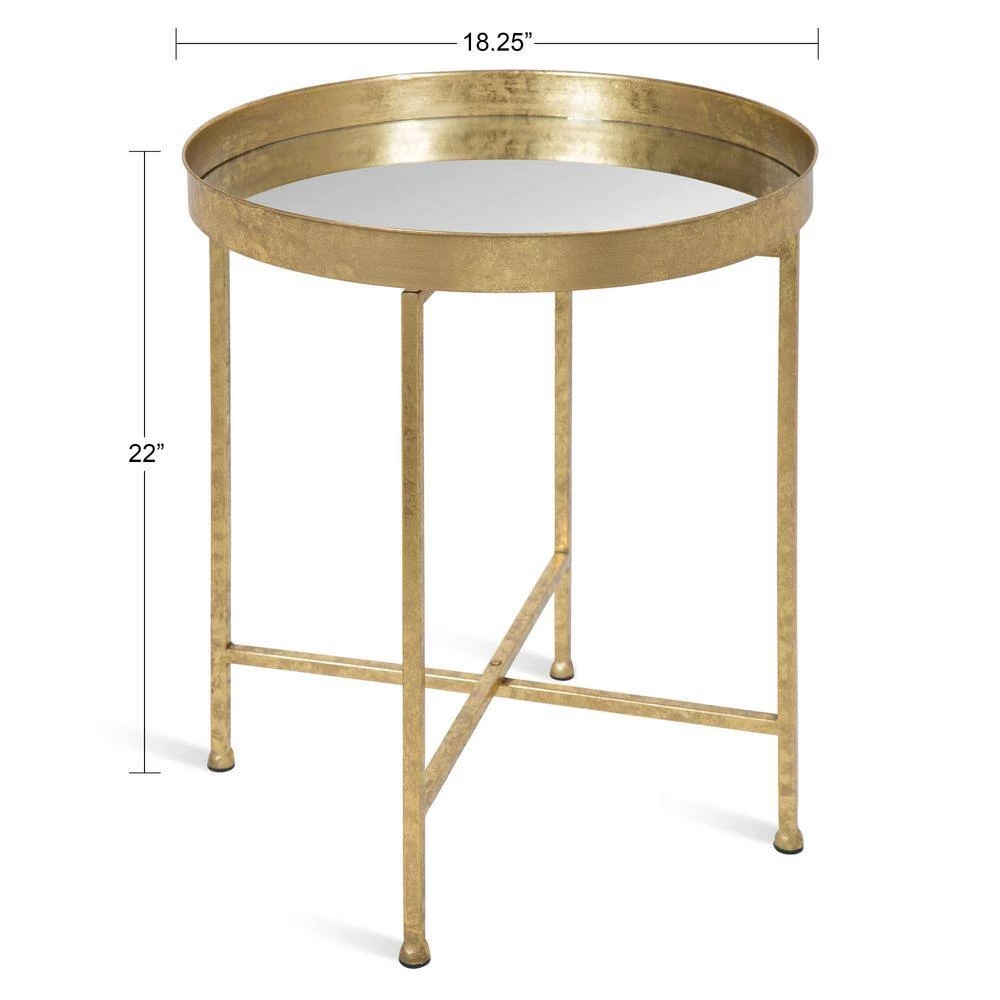 - Glam style: decorative metal end table in gold with a mirrored tray surface and beautiful modern straight legs