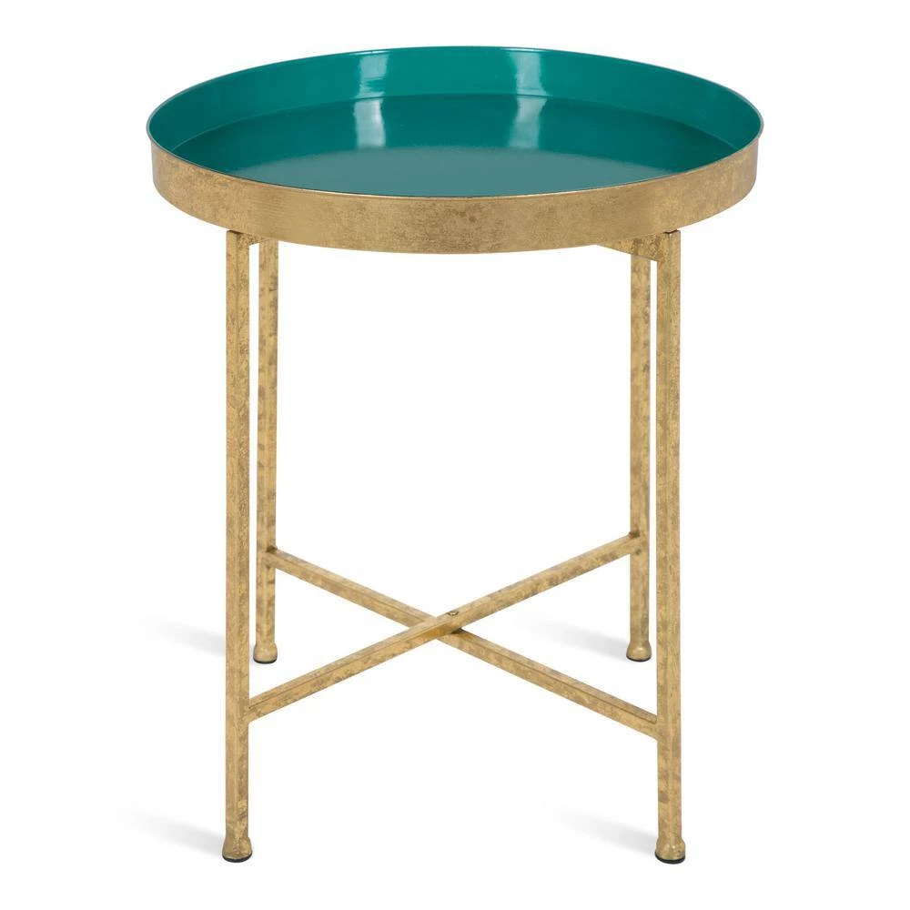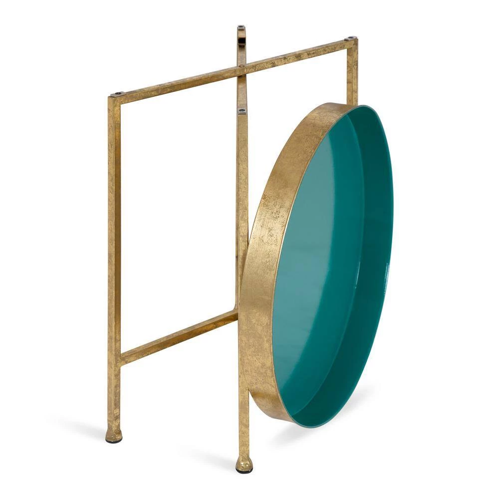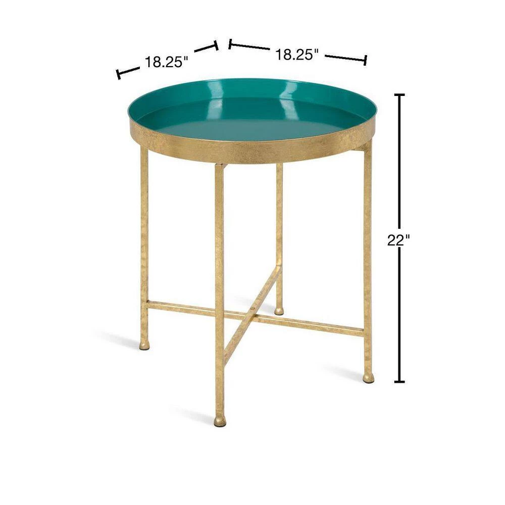 - Glam style: decorative metal end table in gold with a teal tray surface and beautiful modern straight legs