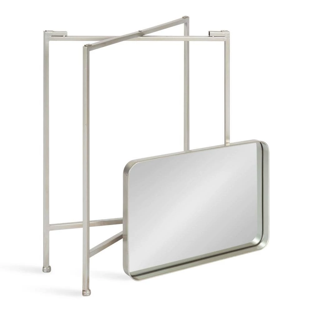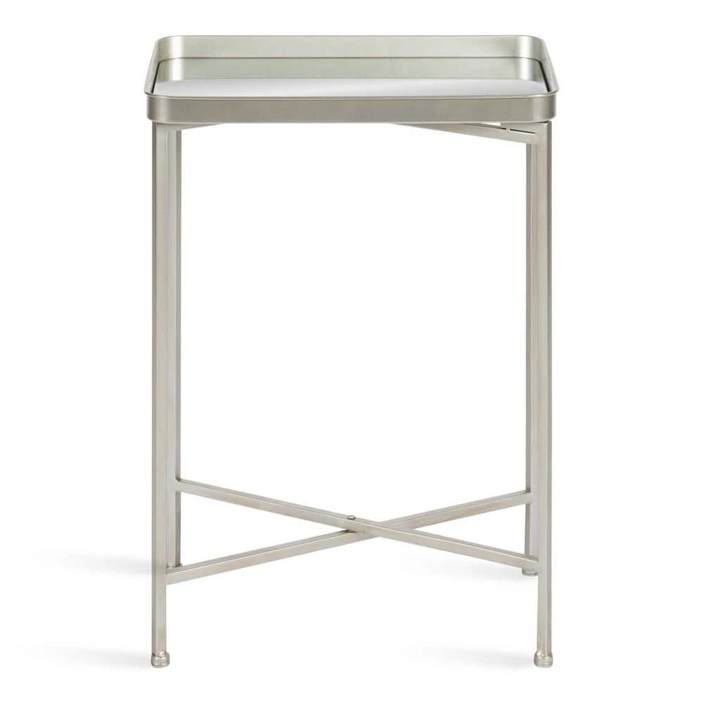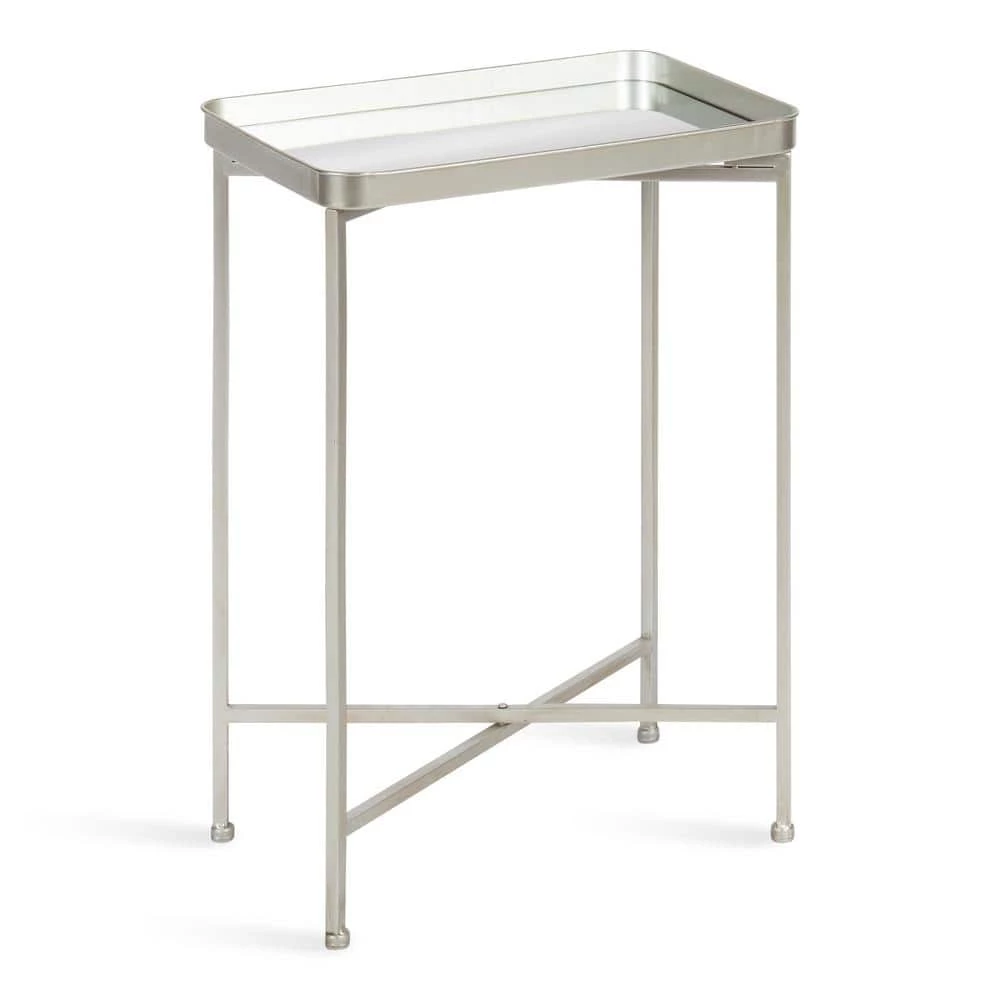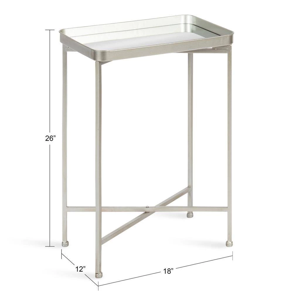 Embrace a beautiful and modern theme when you redecorate with the Celia side table. Inspired by functional yet minimalist aesthetics, the Celia side table features clean lines and a rectangular mirrored tabletop, creating a sophisticated accent that will spark the conversation at any get-together. It’s made from a 100% metal construction, making it resilient enough for multiple years of display. The rectangular tabletop sticks to the frame magnetically, securing onto the cross legs in a snap. The clean cross-leg frame is also foldable, making it easy to stow away when you need extra room at your next gathering. This beautiful Celia table’s overall dimensions are 18 in. wide x 12 in. deep x 26 in. tall , making it a fabulous compliment to your bed, couch, vanity, or entryway. Use it to showcase a gorgeous succulent or store books, keys, and other household necessities. The bottom of each of the legs has footpads attached to prevent scuffing, scratches, or other damage to your hard surfaces.
