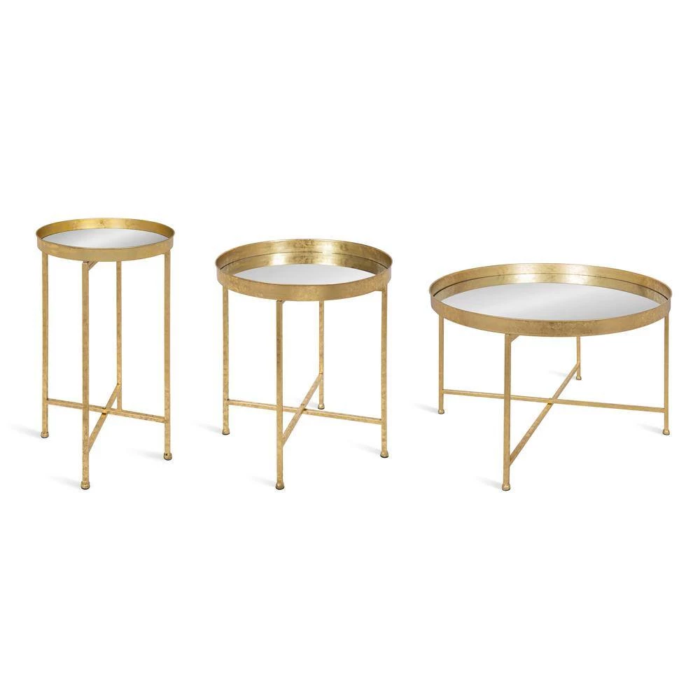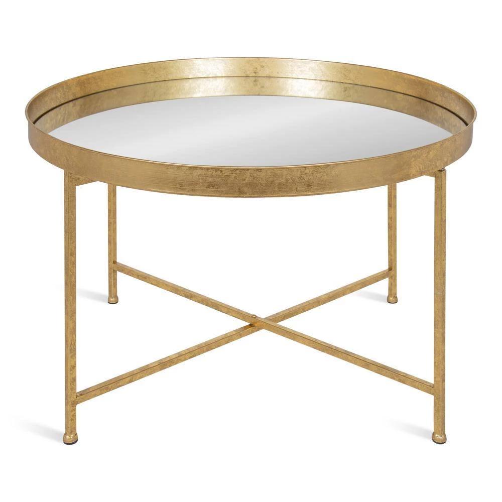 The Celia collection brings a pop of glamour to your home decor. This metal pop up coffee table comes with a large detachable tray with a mirror surface and a foldable base. The round size is perfect for use in your sitting room or living room in front of your sofa. Use it along with the Celia foldable accent table for a lovely stair-step look.