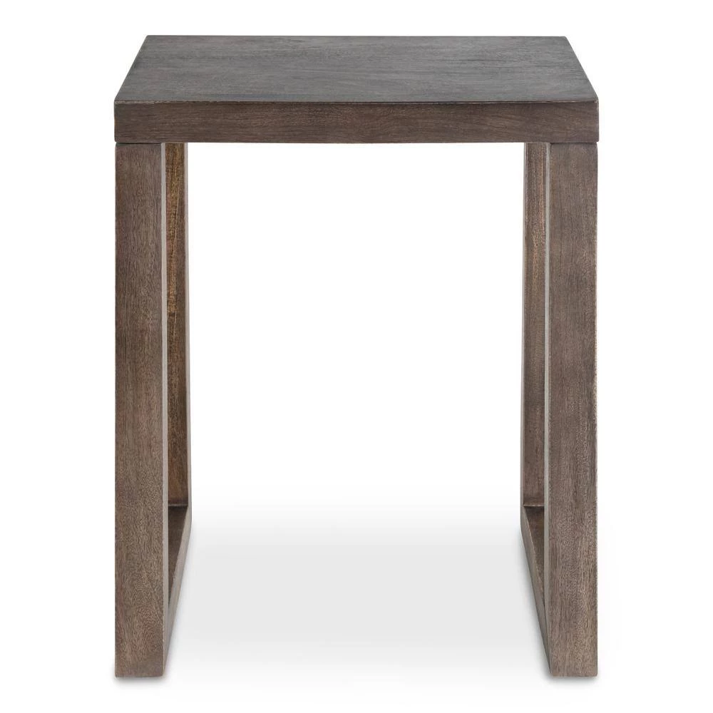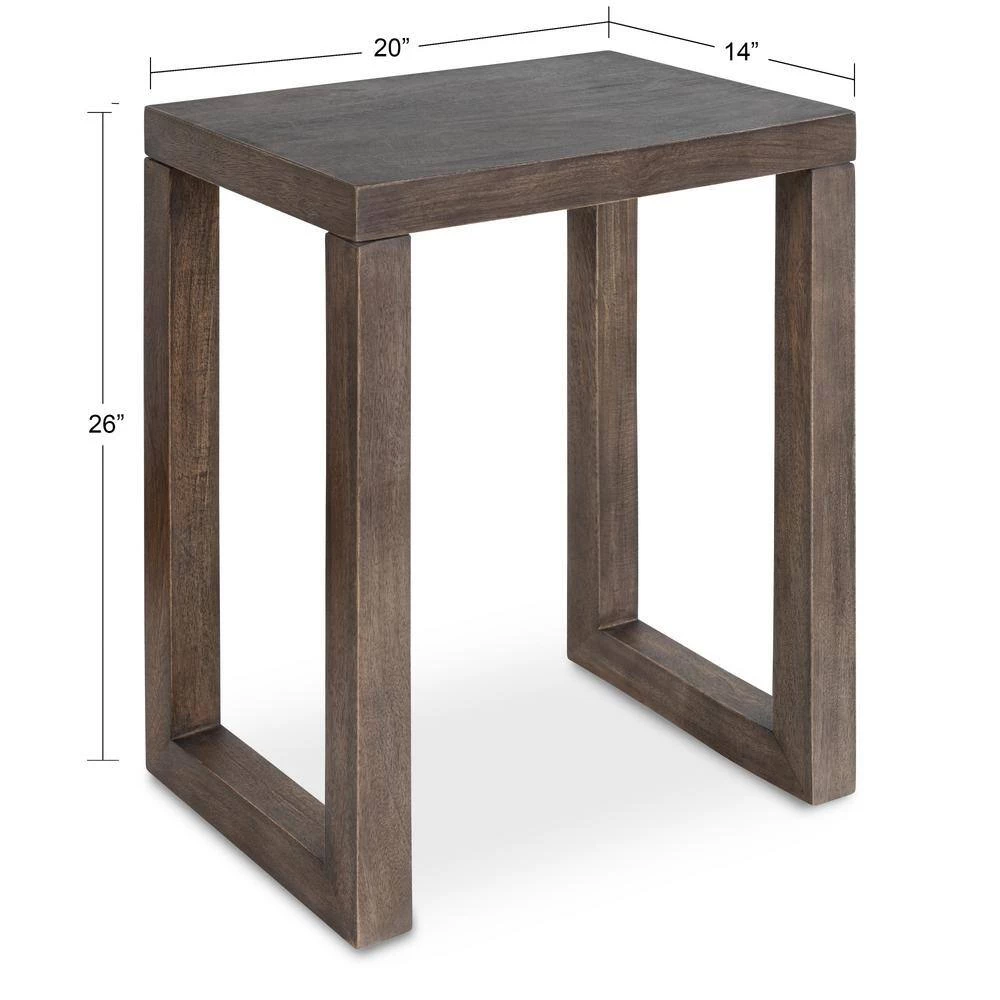 Add the boho-chic Elyria table for a functional yet charming statement in any room. Inspired by bohemian aesthetics and modern functionality, the Elyria features a minimal geometric construction that catches the eye and relishes in craftsmanship performed by hand. The Elyria was handcrafted in India by skilled artisans out of solid mango wood, giving each piece its own distinct graining and finishing. The finish on the Elyria is a rustic gray wash that blends into a variety of decorative color schemes in your home. Its overall dimensions are 20 in. wide x 14 in. deep x 26 in. tall , making it an excellent complement to your couch, armchair, bed, or entryway. Use it as a decorative catch-all for keys and household items, an area for a lamp and decorative accents, or a place to serve drinks on coasters at your next get-together. The adjustable levelers on the bottom of each leg also allow for a sturdy and size-appropriate statement for any room. Assemble the Elyria in a matter of minutes thanks to the 3-step process and straight-forward instructions included.