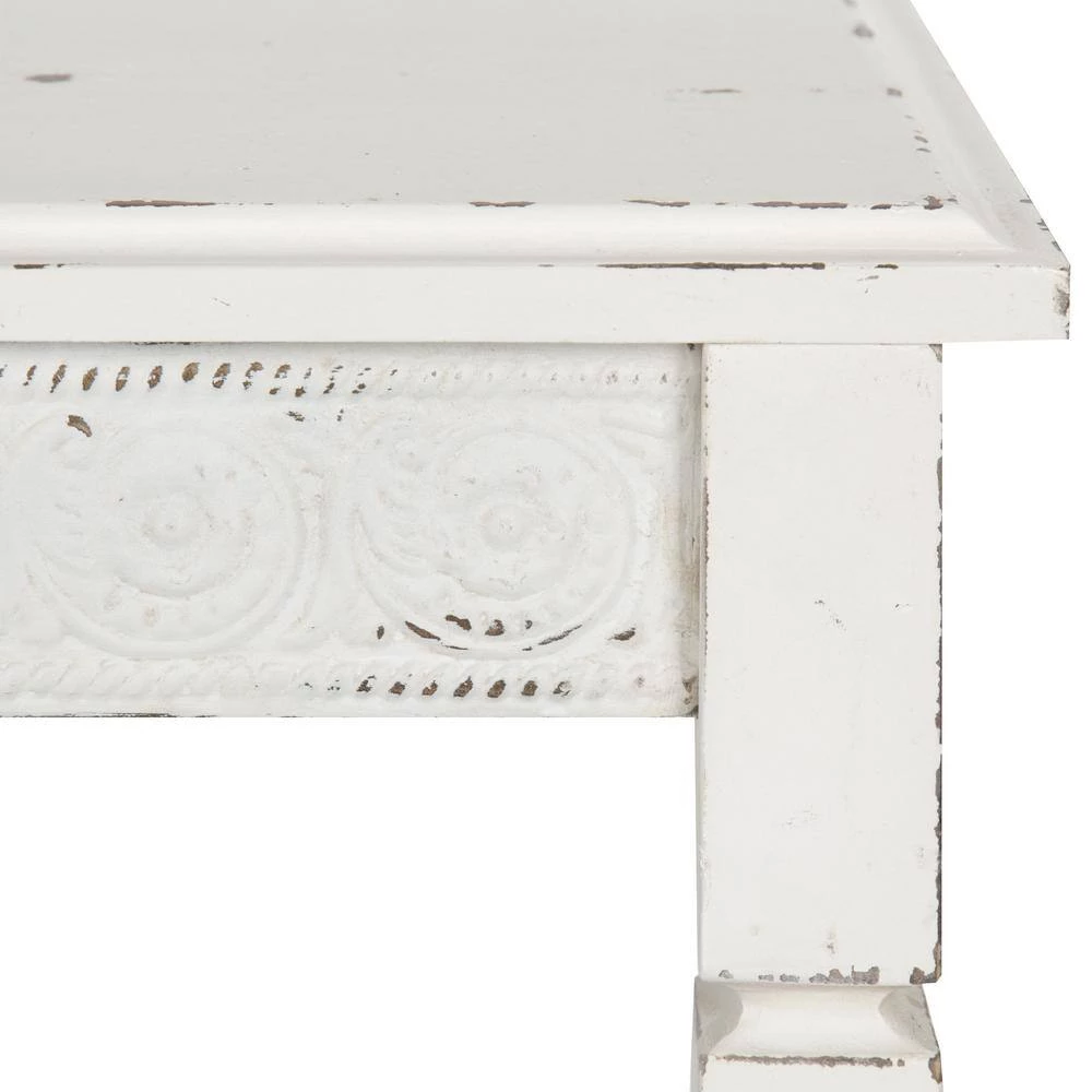 - The construction has the advantage of a modern MDF wood but is finished in what the designer calls a farmhouse cream giving it a timeless country cottage look that will accentuate most home decor