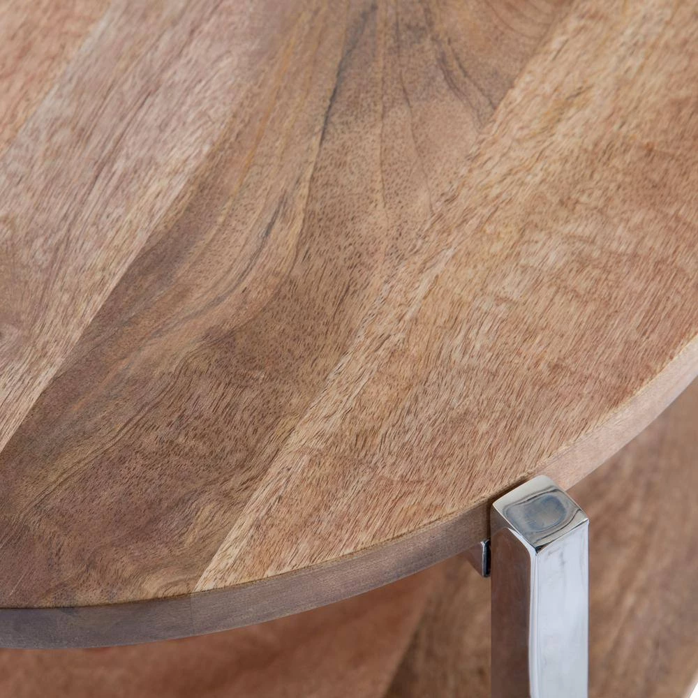 Decorate your home with a modern, boho-casual accent piece with tons of function. The Lamaar side table is the perfect addition to your living room, bedroom, or entryway, featuring a lovely minimalist design that fits into any decorative aesthetic. It utilizes this minimal design with three premium, stainless steel legs, holding 2-round tiers of tabletops. The tiers were constructed from solid mango wood, native to the country of India, where each Lamaar table was crafted by hand. This personal craftsmanship makes each Lamaar table unique and one-of-a-kind. This sophisticated end table’s overall dimensions are 19 in. wide x 19 in. deep x 24.5 in. tall , making it a fantastic pairing with an entryway, couch, bed, or armchair. Utilize the top tier as a place for a lamp, a decorative plant, media remotes, or books, while the bottom tier is fabulous for blankets, media, and other keepsakes. The table is perfectly stable with protective foot pads that both level it out and prevent damage to hard surfaces. Your new beautiful end table will be ready for use in a matter of seconds with a convenient and easy 3-step assembly process.