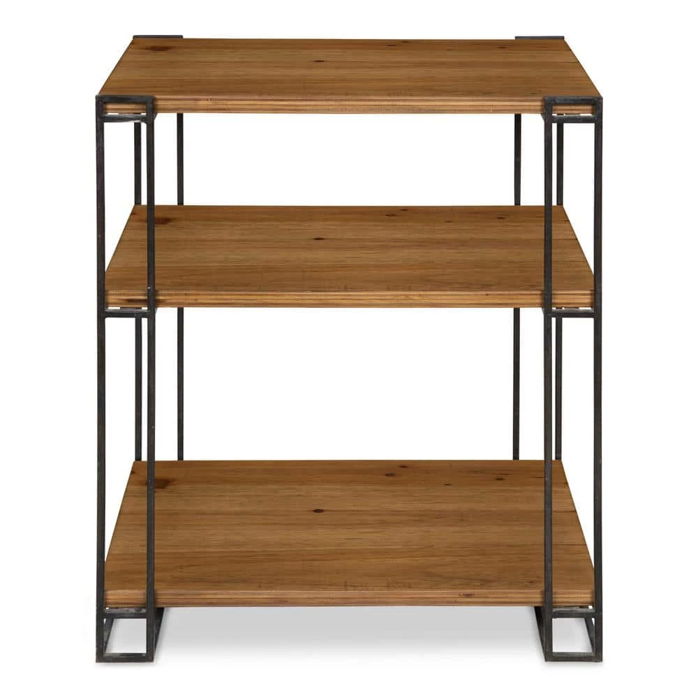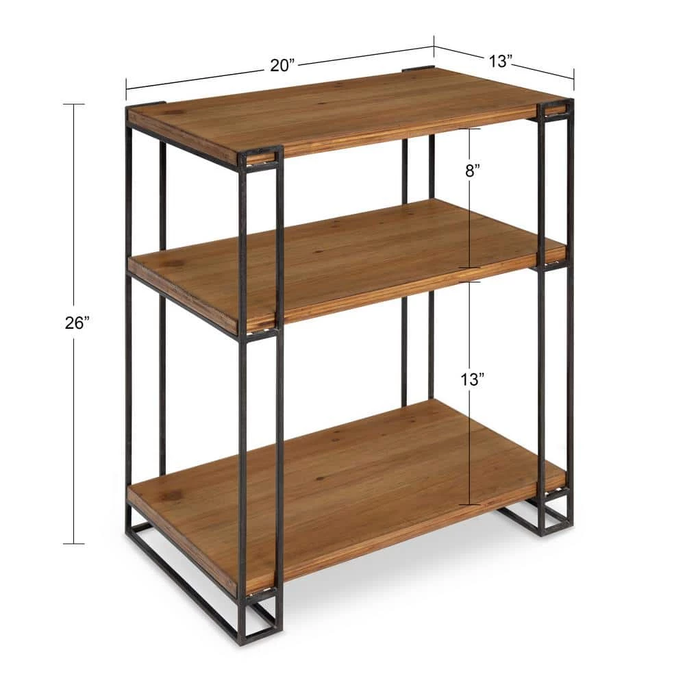 From display shelves to a bookshelf or a great catch-all surface, the Lintz Side Table is as versatile as it is functional. And did we mention it’s beautiful as well. The solid wood shelves complement the black metal frame making a striking accent piece for anywhere in your home. The overall dimensions are 26 in. tall x 20 in. wide. There is 8 in. between the top and middle shelf and approximately 10 in. between the middle and bottom shelf.