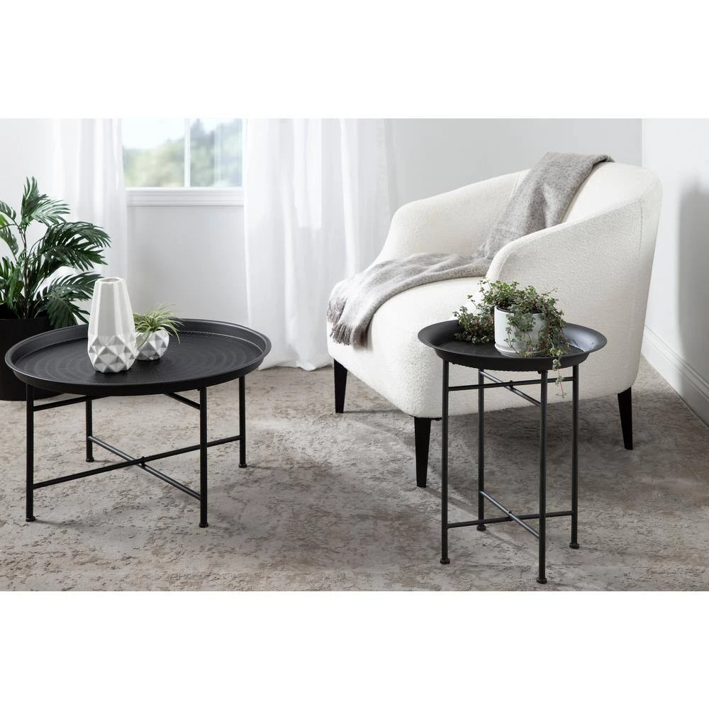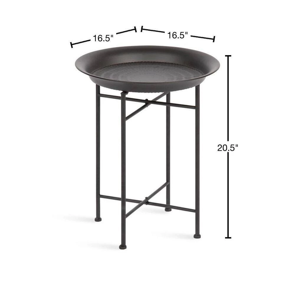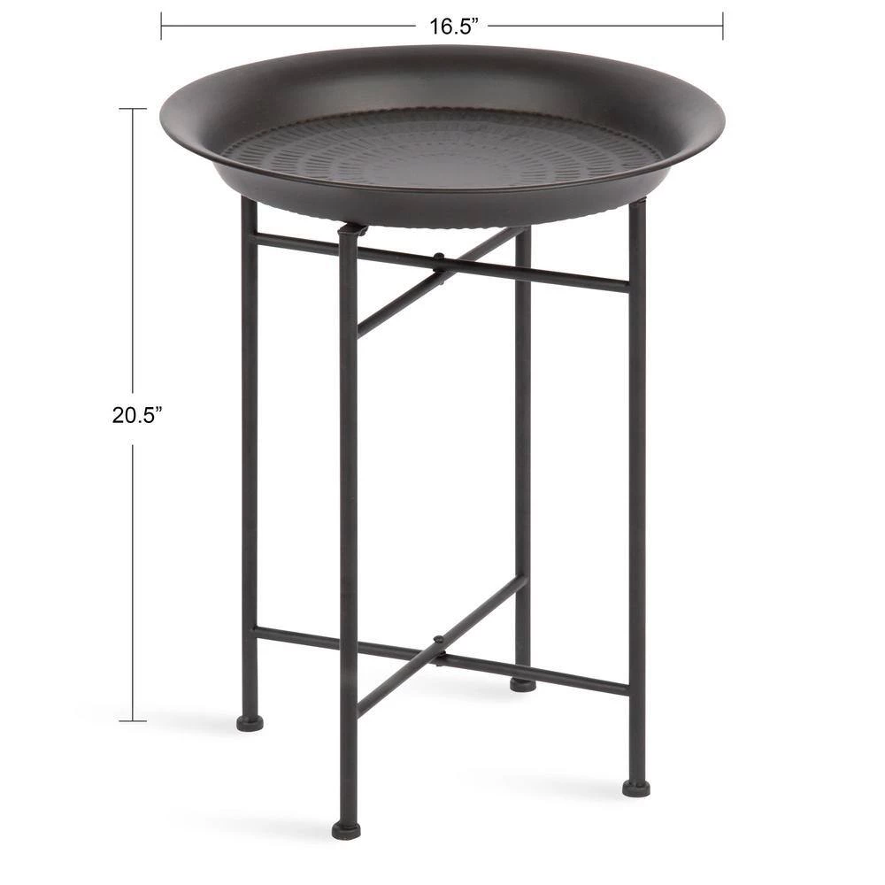 The Mahdavi side table features a sophisticated, organic look that draws the eye and fascinates guests with its tactile texture. Inspired by modern design, the Mahdavi introduces an intelligent, foldable design, providing an excellent assembly and storage method at a moment’s notice. The foldable design features a collapsible frame that screws into the tabletop’s four sides to ensure it is secure. This decadent piece of modern decor features a black finish and an embossed, organic pattern on the tabletop, inspired by Moroccan furnishings’ dedicated craftsmanship. The raised edge on the tabletop also secures your items on the Mahdavi without the fear of them falling off the edge. For the industrial lover, the Mahdavi was made from 100% metal, creating an accent piece that is as resilient as it is beautiful. The Mahdavi table’s overall dimensions are 16.5 in. wide x 16.5 in. deep x 20.5 in. tall , making it a fantastic pairing with a couch, armchair, or bed. It’s perfect for creating a commanding decorative focal point that serves multiple purposes in your contemporary home.
