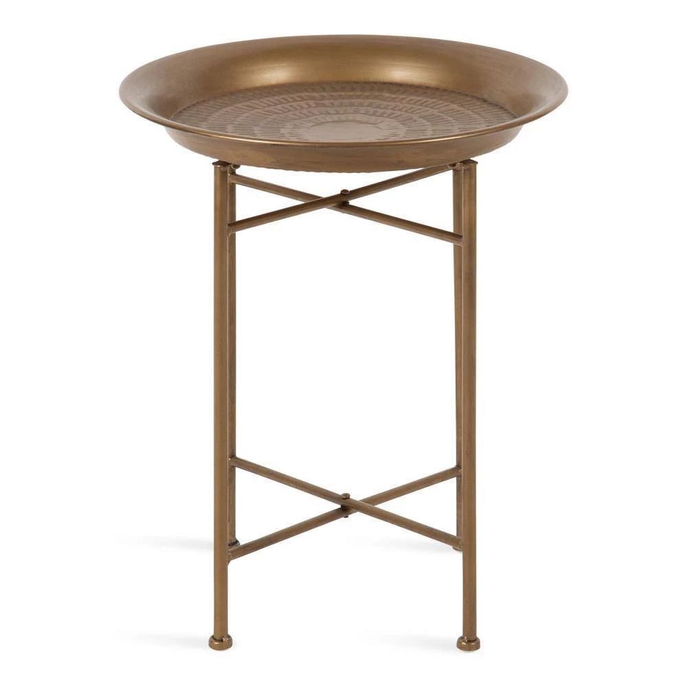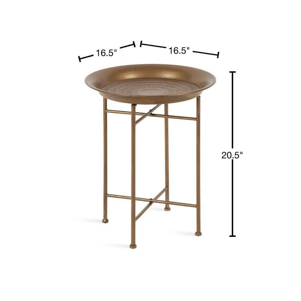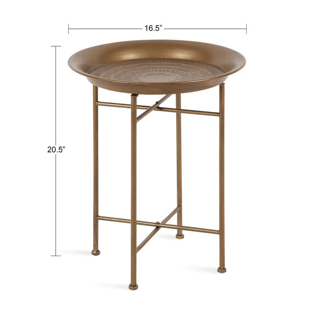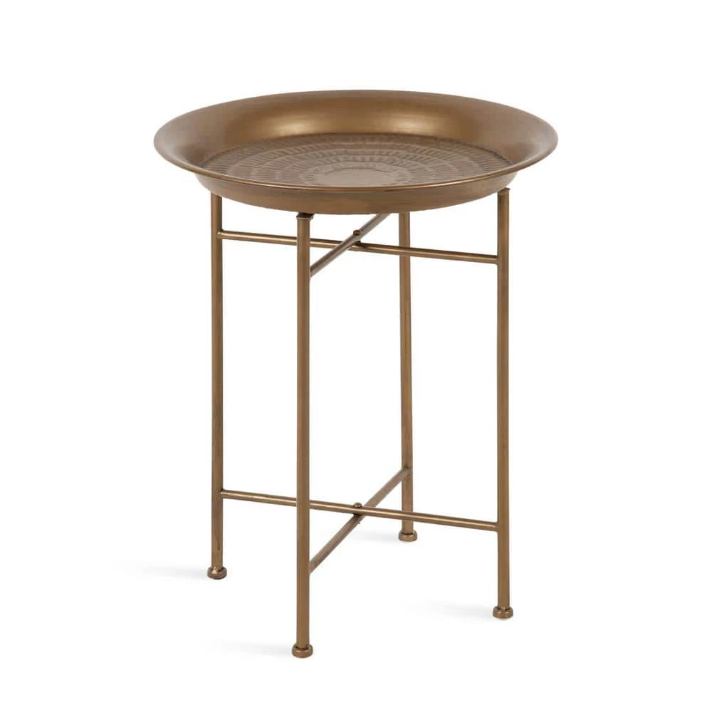 - Boho chic: use the brushed metallic gold finish to add interest and beauty to your home with the Kate and Laurel Mahdavi end table, a round tray adorns the top of the metal table and sits at the height of 20.5 in. an ideal size for most rooms