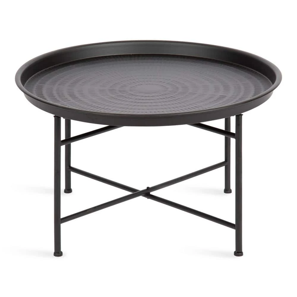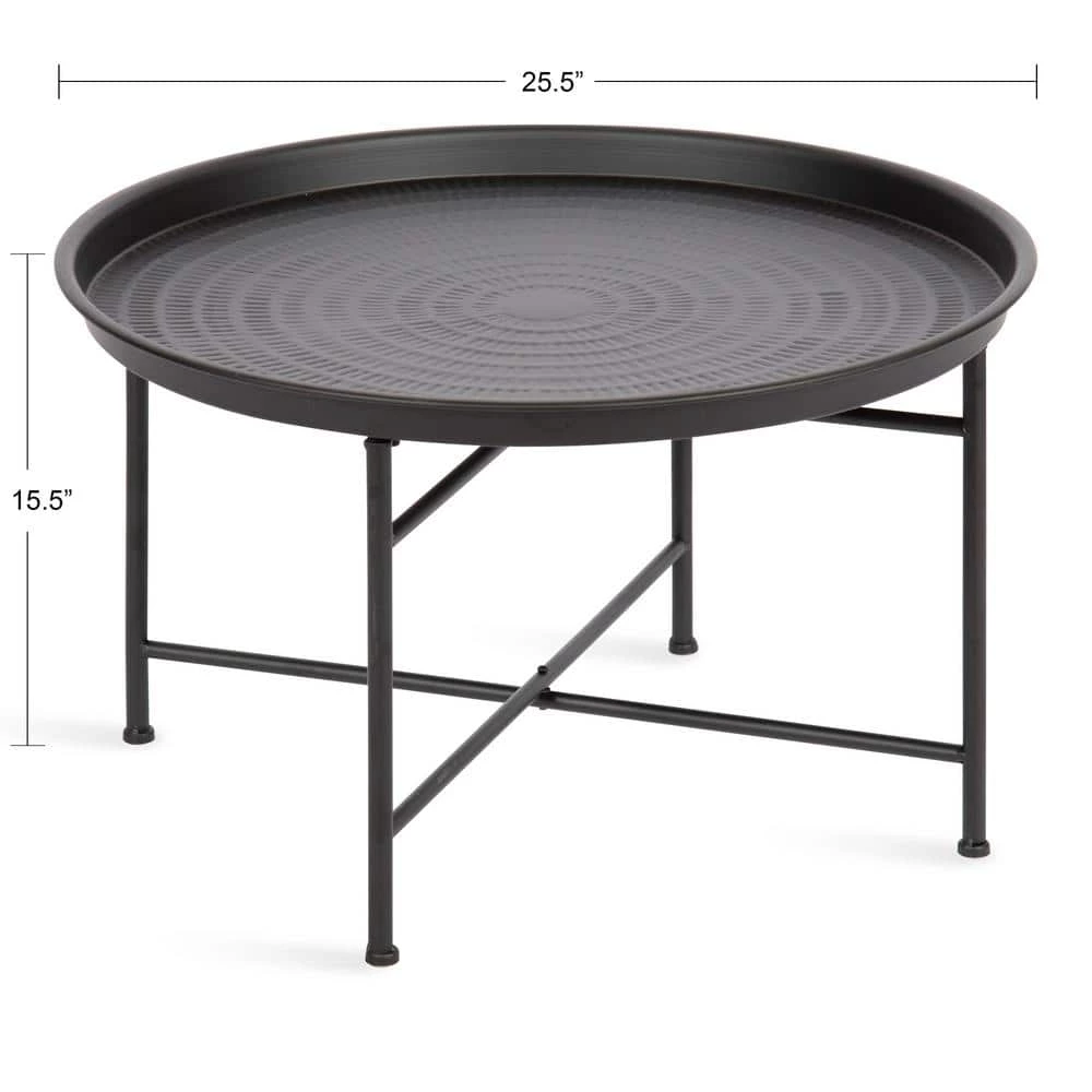 The Mahdavi coffee table features a sophisticated, organic look that draws the eye and fascinates guests with its tactile texture. Inspired by modern design, the Mahdavi introduces an intelligent, foldable design, providing an excellent assembly and storage method at a moment’s notice. This foldable design features a screw-in frame on 4-sides so that the tabletop sits securely. This decadent piece of modern decor features a black finish and an embossed, organic pattern on the tabletop, inspired by Moroccan furnishings dedicated craftsmanship. The raised edge on the tabletop also secures your items on the Mahdavi without the fear of them falling off the edge. The table was made from 100% metal, creating an accent piece that is as resilient as it is beautiful. The Mahdavi table’s overall dimensions are 26 in. wide x 26 in. deep x 16 in. tall, making it a fantastic pairing with a couch, armchair, or bed. It’s perfect for creating a commanding decorative focal point that serves multiple purposes in your contemporary home.