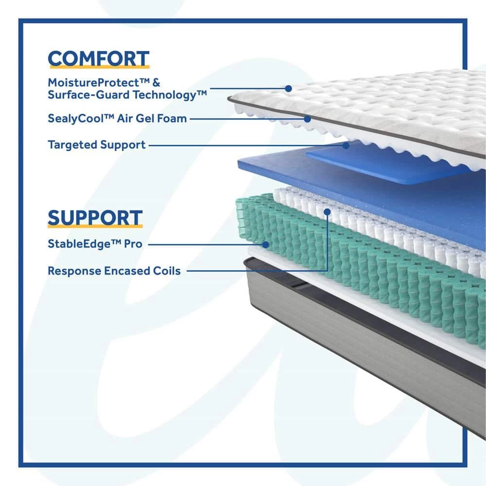 - Sealy cool air gel foam and Sealy cool gel foam paired with fabric-encased coils deliver flexible, durable, breathable comfort with conforming support, reduced motion transfer and a soft feel