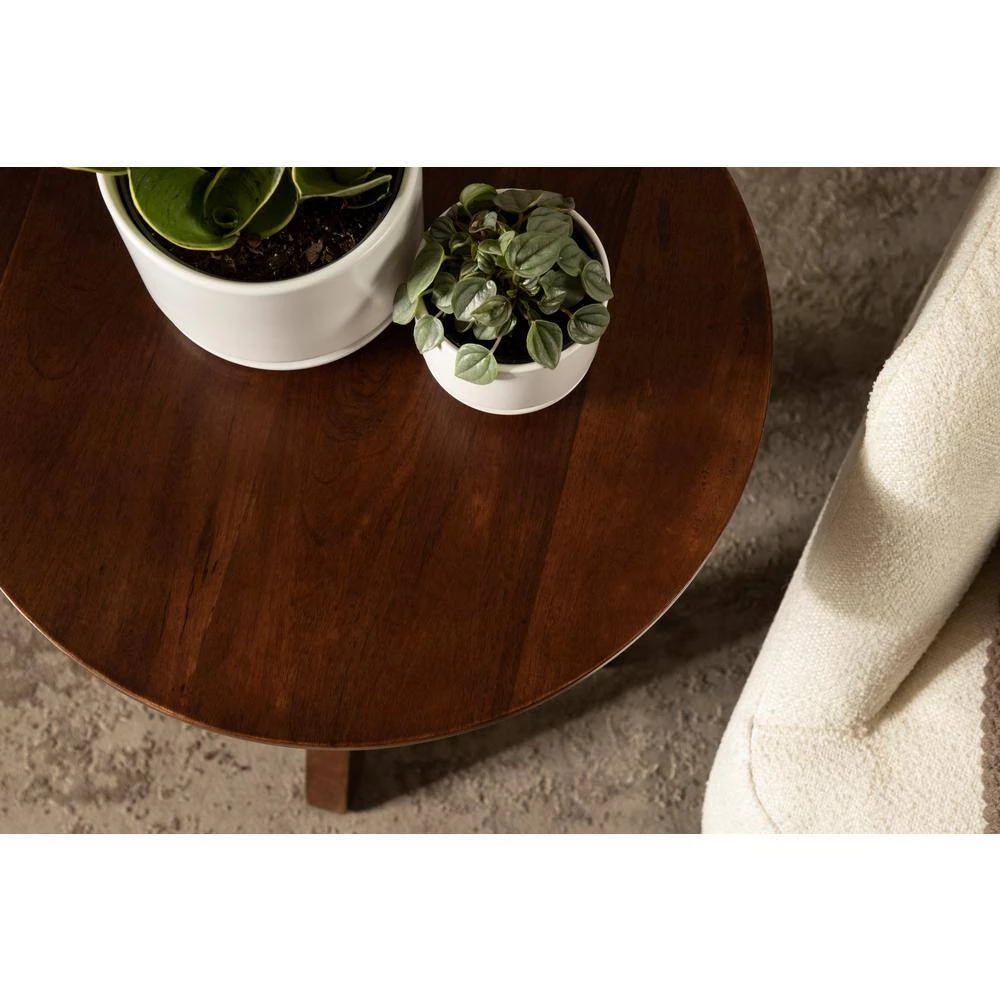 - Unique design: the Soleyn features a round tabletop with tripod-like legs, featuring a walnut finish for a midcentury aesthetic