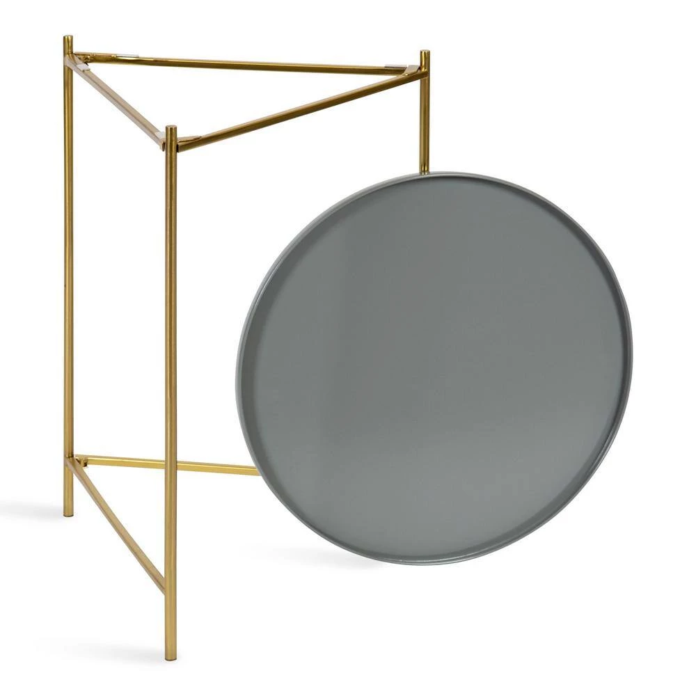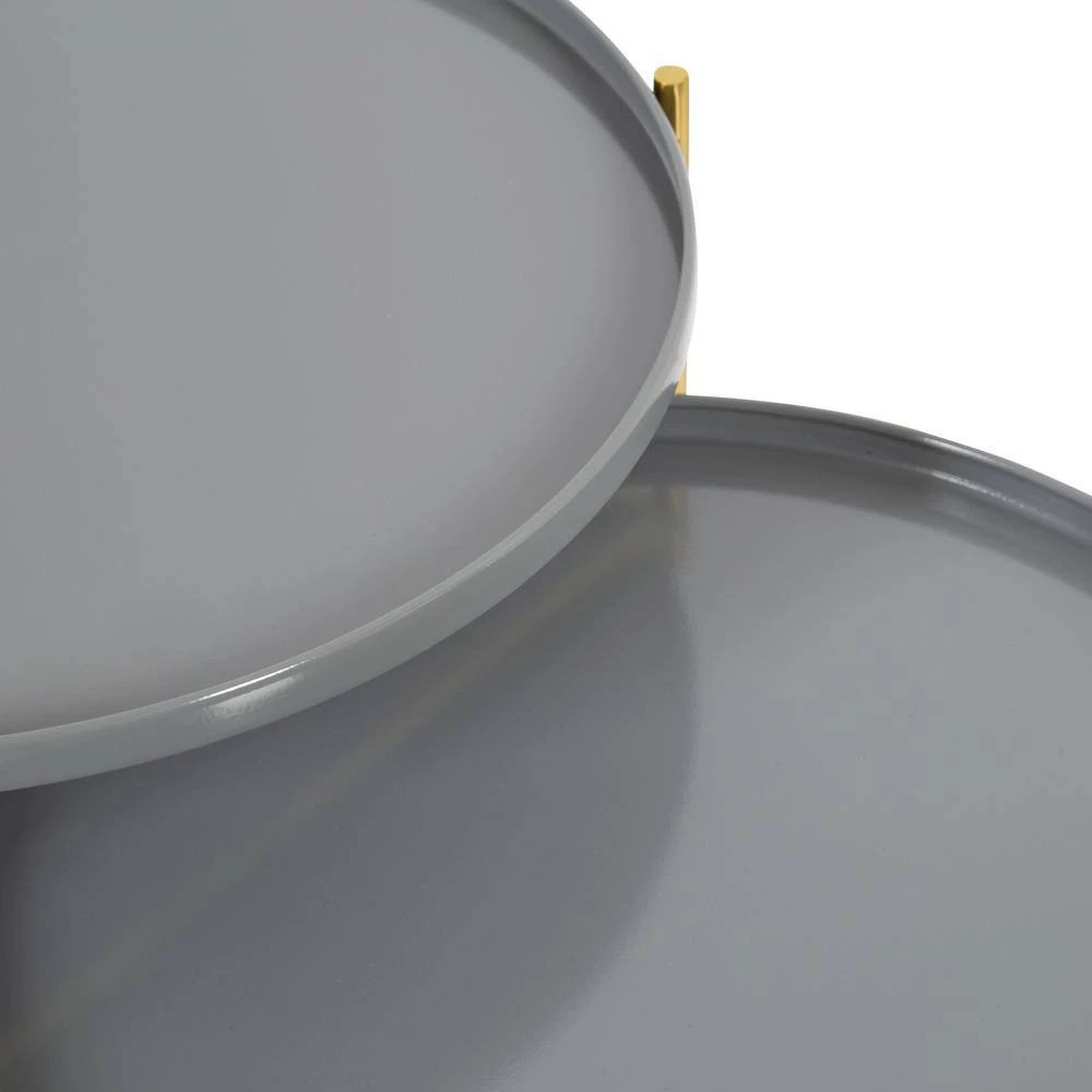 - Bold finish: the metal frame features a polished gold finish while the 2-tabletops stand out with a soft gray powder coat finish