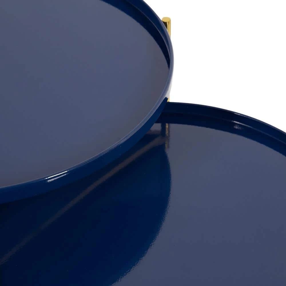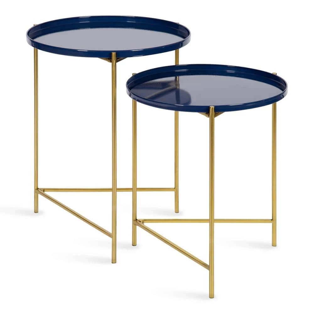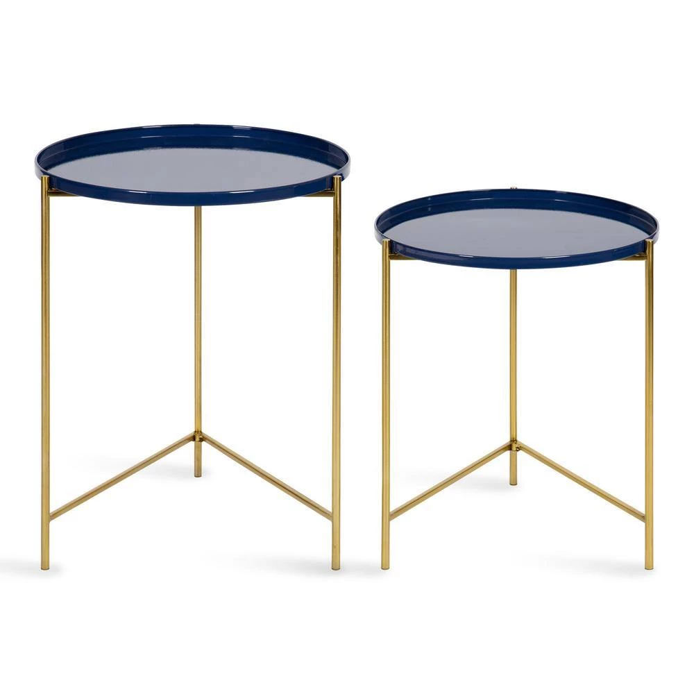 - Bold finish: the metal frame features a polished gold finish while the 2-tabletops stand out with a bold navy blue powder coat finish