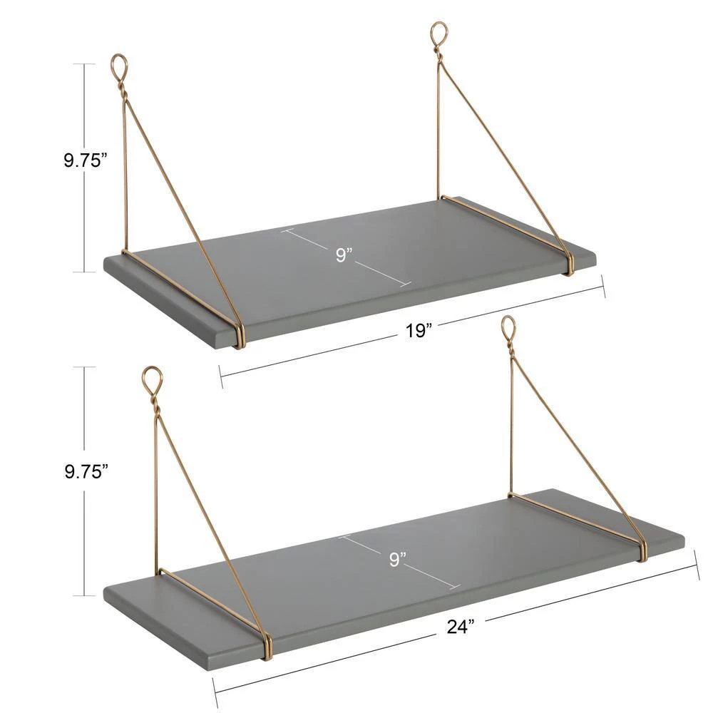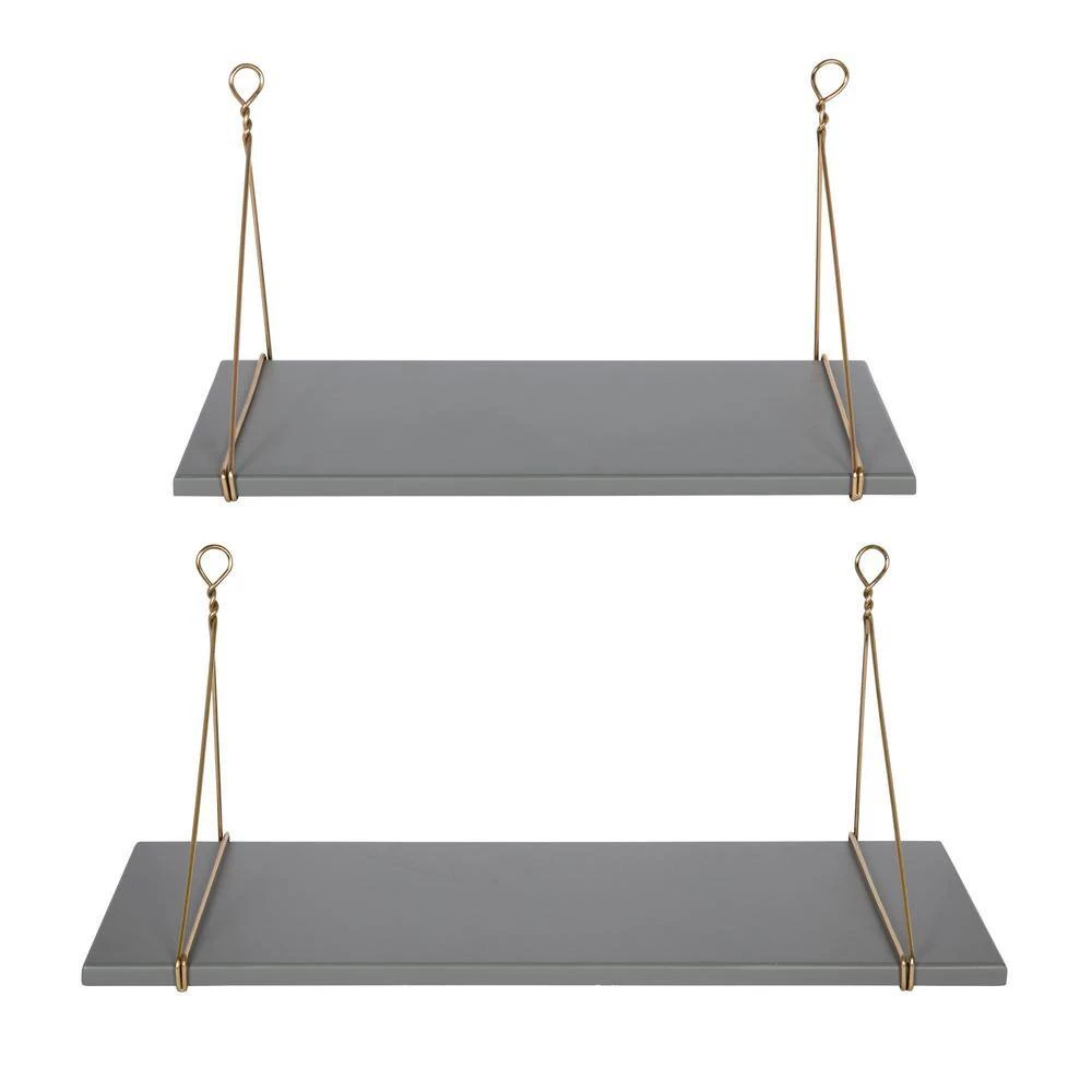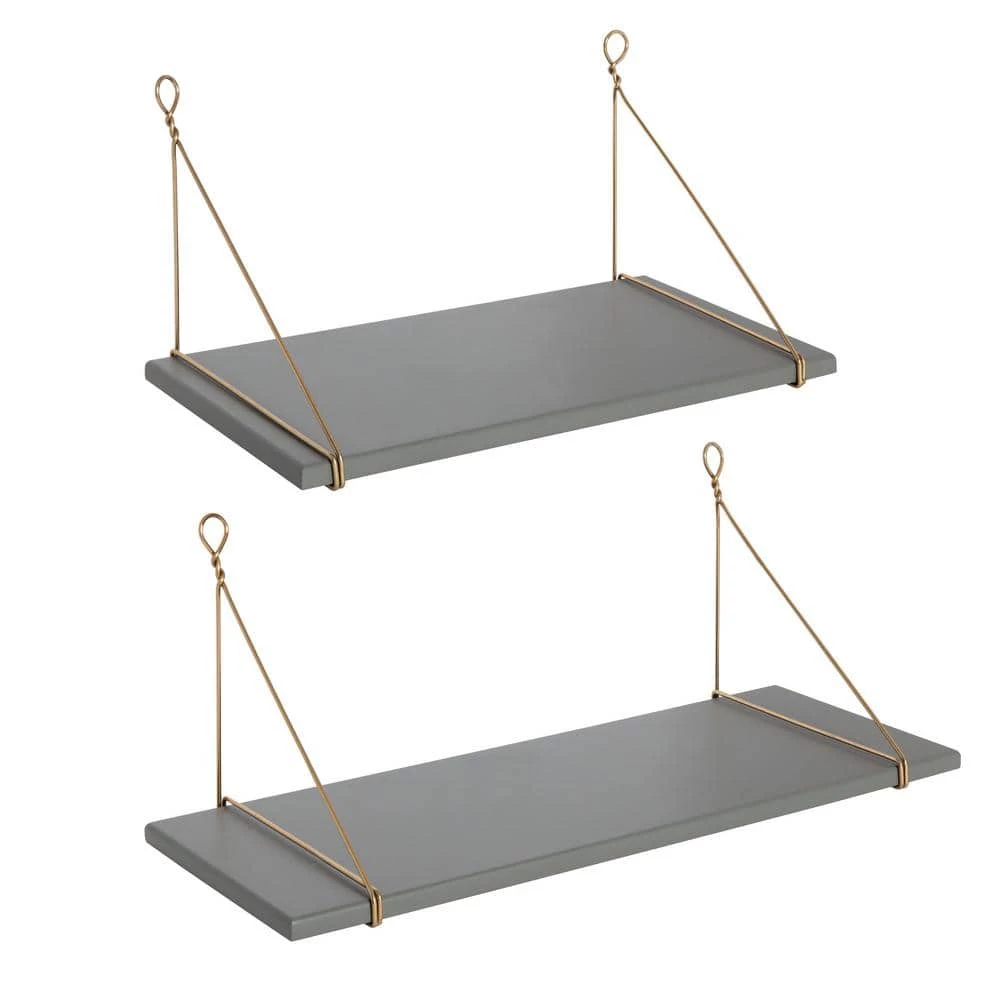 - Constructed with a reliably sturdy wooden material and finished with a hard, satin paint, these shelves were made not to chip or fade over time, the thick metal wire is a lovely brass color and is twisted around the shelf twice to add strength